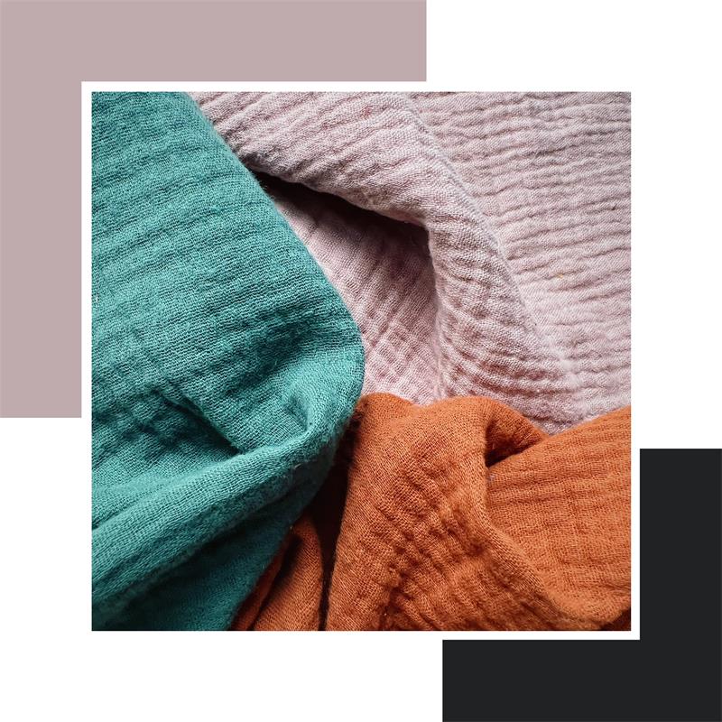 In addition to its breathability, the layered construction of double gauze fabric lends it a subtle and charming texture, often featuring a delicate crinkled or puckered appearance. This texture adds visual interest to the fabric and gives it a relaxed, lived-in aesthetic. The fabric's gentle drape and soft gathers make it a popular choice for creating flowing, voluminous silhouettes in clothing.