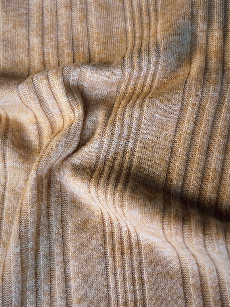 "Rayon nylon rib knitting, cashmere touch" refers to a fabric that combines the softness of cashmere with the durability and flexibility of rayon and nylon fibers. This luxurious textile is created using a rib knitting technique, resulting in a stretchy, textured fabric with a ribbed appearance. The incorporation of rayon, a semi-synthetic fiber made from cellulose, and nylon, a synthetic polymer, allows for a fabric that mimics the luxurious feel of cashmere while offering added strength and resilience.