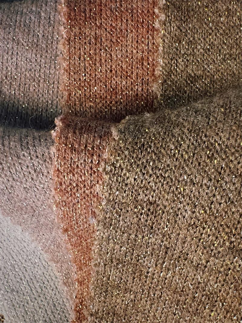 The "rayon nylon poly knitting scuba, faux cashmere, with lurex" fabric is a sophisticated and luxurious textile that brings together a variety of premium materials and embellishments. Composed of a blend of rayon, nylon, and polyester, this fabric offers a unique combination of softness, durability, and flexibility, making it an excellent choice for creating high-end fashion garments. The addition of lurex, a metallic yarn, further elevates the fabric's appeal by introducing a subtle touch of shimmer and glamour, while the incorporation of faux cashmere adds a luxurious and plush feel to the fabric.